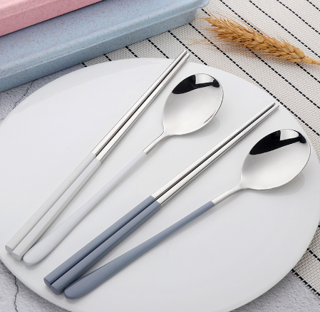 Details: Place Of Origin: Guangdong,China Material:18/8 Stainless Steel Color:White,Gray,Green,Black,Red,Blue,Pink(As the picture show)   Package Includes: 1 Pair Chopsticks+1 Pcs Spoon+1 Box(the box color is random)