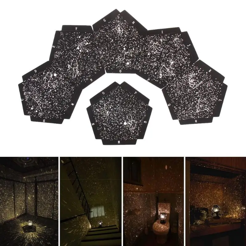 Features:A magic of starlight Effects indoorsAn amazing present for kidsCreate a romantic mood for loversComes with a hardcover 12 constellations manualTwo small bulbsSpecifications:Body Color: BlackMaterial: Plastic & ElectronicPowered by: 2x (AA) batteries (not included)  1 Set Star Projection Lamp